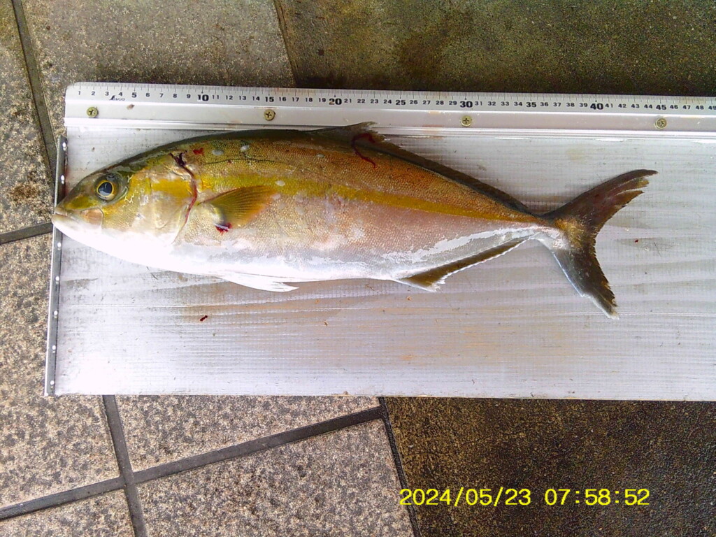 マダイ40cmと30cm、ハマチ50cm、ヒラメ43cmと40cm、セイゴ2尾、小アジ230尾、ガシラ3尾。