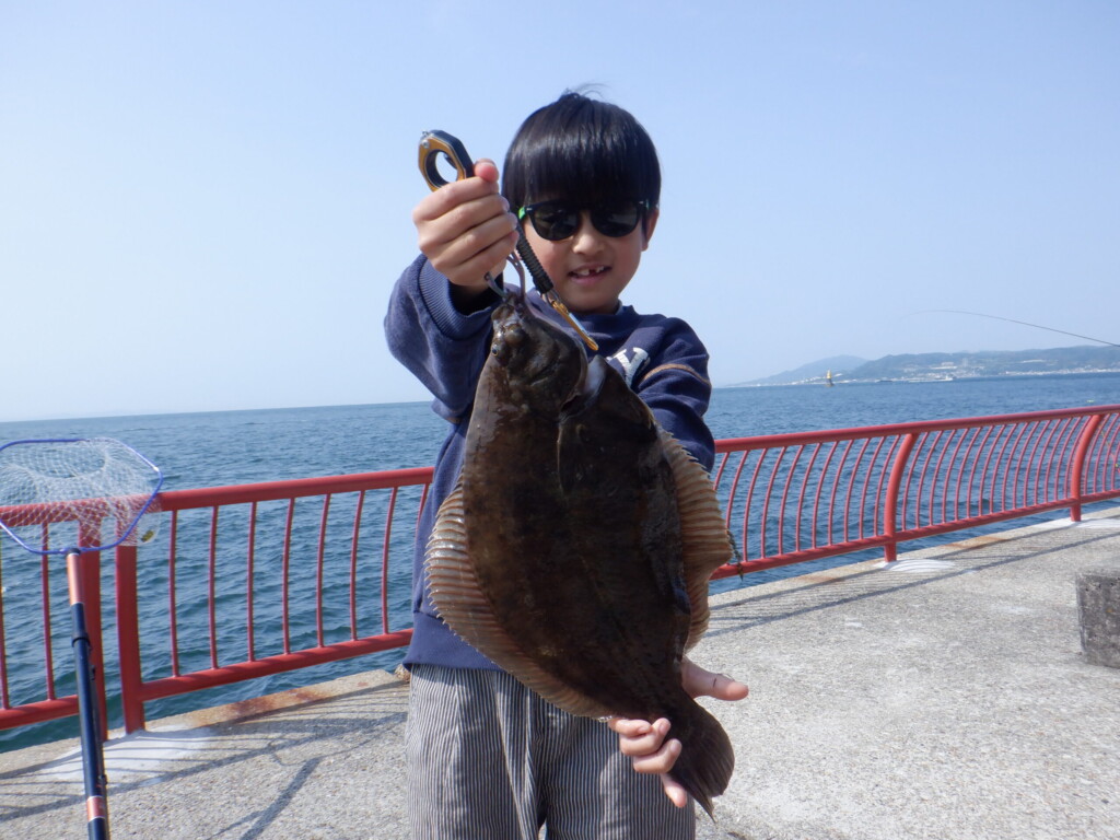 ヒラメ50cmと45cm、ガシラ10尾、メバル3尾、小アジ20尾、ウマヅラハギ3尾。