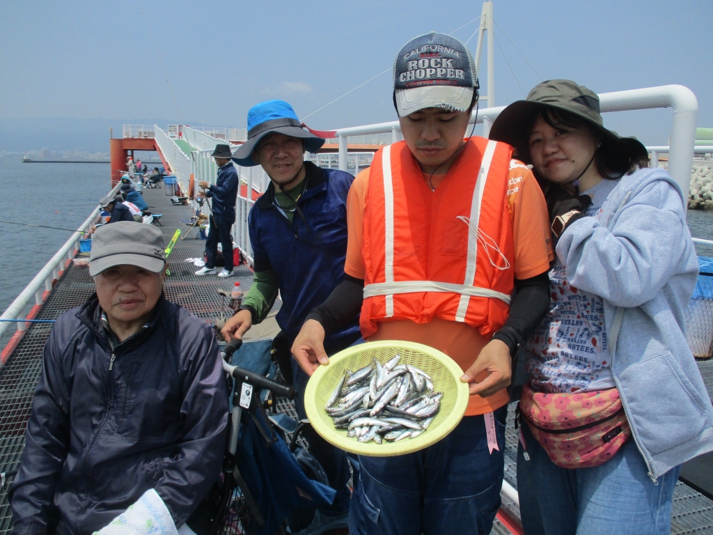 ハネ59cmと55cm、チヌ38cmと35cm、アジ15~20cm40尾、サッパ10~15cm180尾、カタクチイワシ8~14cm3500尾、コノシロ31cm、ツバス21cm。