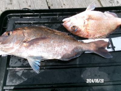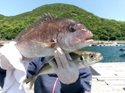 マダイ47cmと34cm、ハネ47cm、グレ31cm頭に3尾、メバル25cm頭に2尾、アジ20~25cm30尾超、小アジや豆アジも。