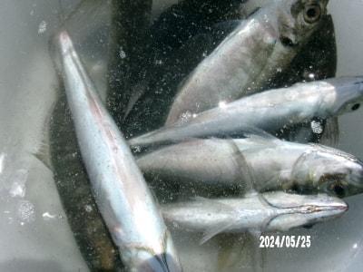 ハネ42~45cm6尾、セイゴ31cm、チヌ36cm、アジ15~20cm20尾、サッパ10~15cm200尾、カタクチイワシ8~14cm2000尾、ツバス20cm。