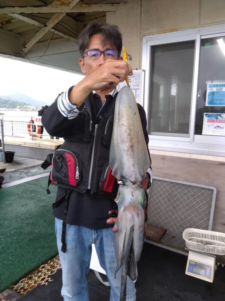 今治周辺でヤズ60cm、アオリイカ1.5kg頭に2ハイ。