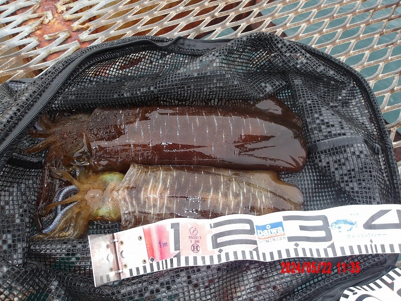 コウイカ胴長25cm、アオリイカ胴長35cm。