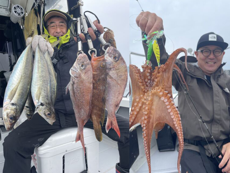 マダイ、鬼アジアコウ、コチ、タコなどで出船中!