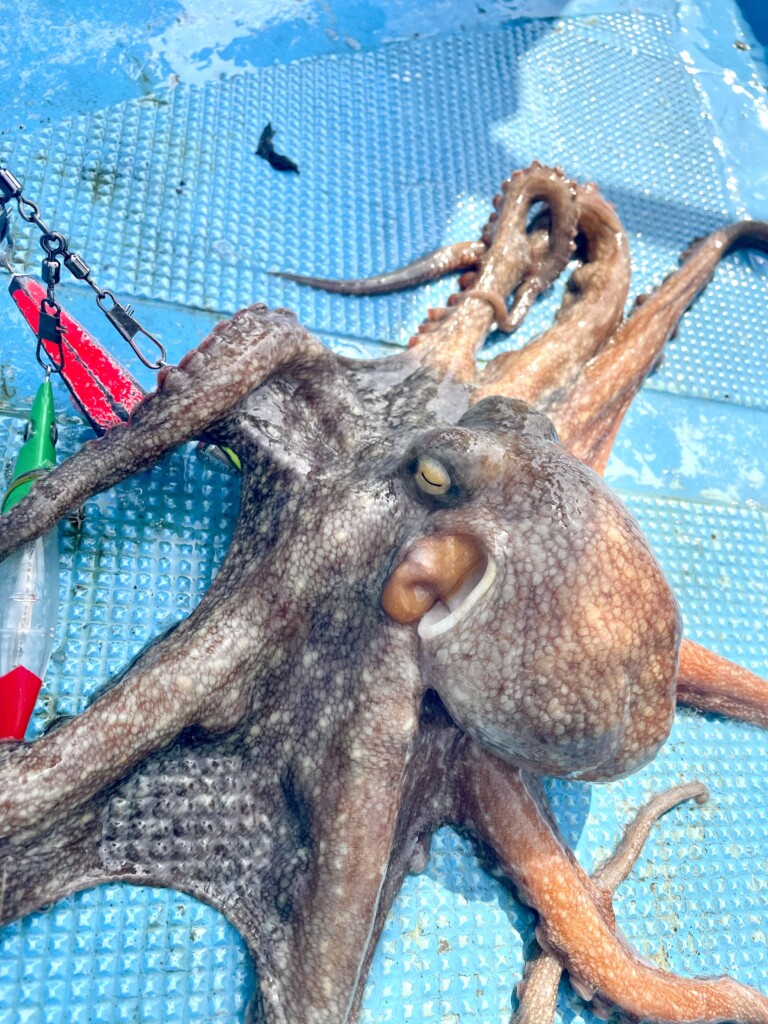 ちょっとしたテクニックですが、20~30秒に1度、50cmから1mほど、仕かけを持ち上げては、また落とす(リフト&フォール)を繰り返すことで、遠くにいるタコにもアピールし、出合える確率は、グンと上がりますよ!