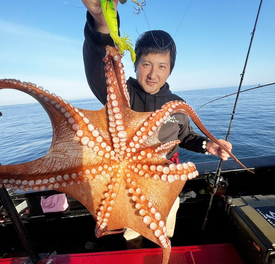 明石沖では、マダコが絶好調キープ中。少ない人でも10パイ前後上げており、土産は十分。よい人は50パイオーバーの大釣りも出ていました。サイズも、3~4kg級の巨大ダコもチラホラと上がっていました。