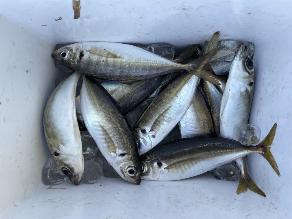 この週は、天候が芳しくなかったこともあり、全体的な釣果も少なめ。ですが20cm前後の小アジサイズはポツポツと登場。