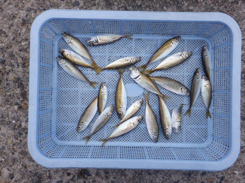 アジ5尾、小アジ3尾、豆アジ40尾。