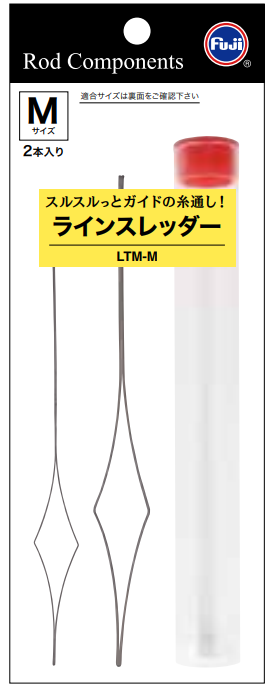 イライラするガイドへのライン通しに便利な、富士工業の「ラインスレッダー」。ガイドだけでなく、ベイトリールのレベルワインダーにも使えます。