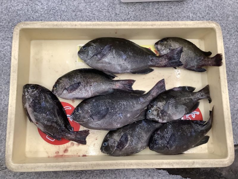 白杉漁港でグレ25cm頭に10尾。