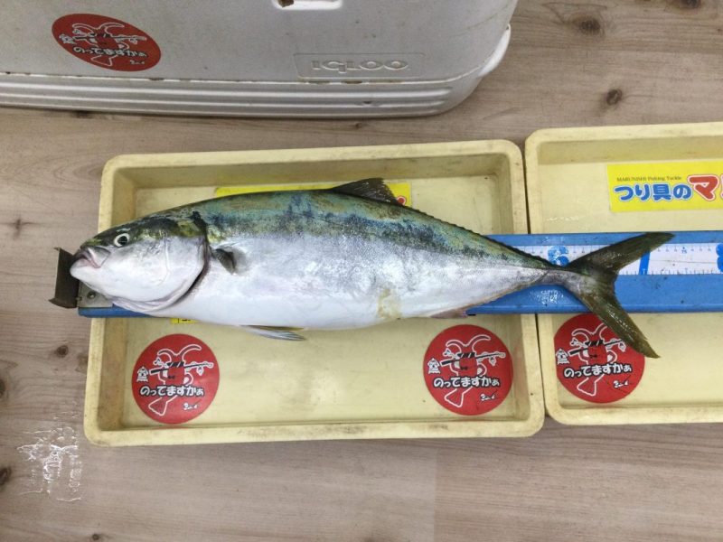 和歌山市内のショアジギングでフジモト氏メジロ75cm。ヒットルアーはゲキトウジグ30g。