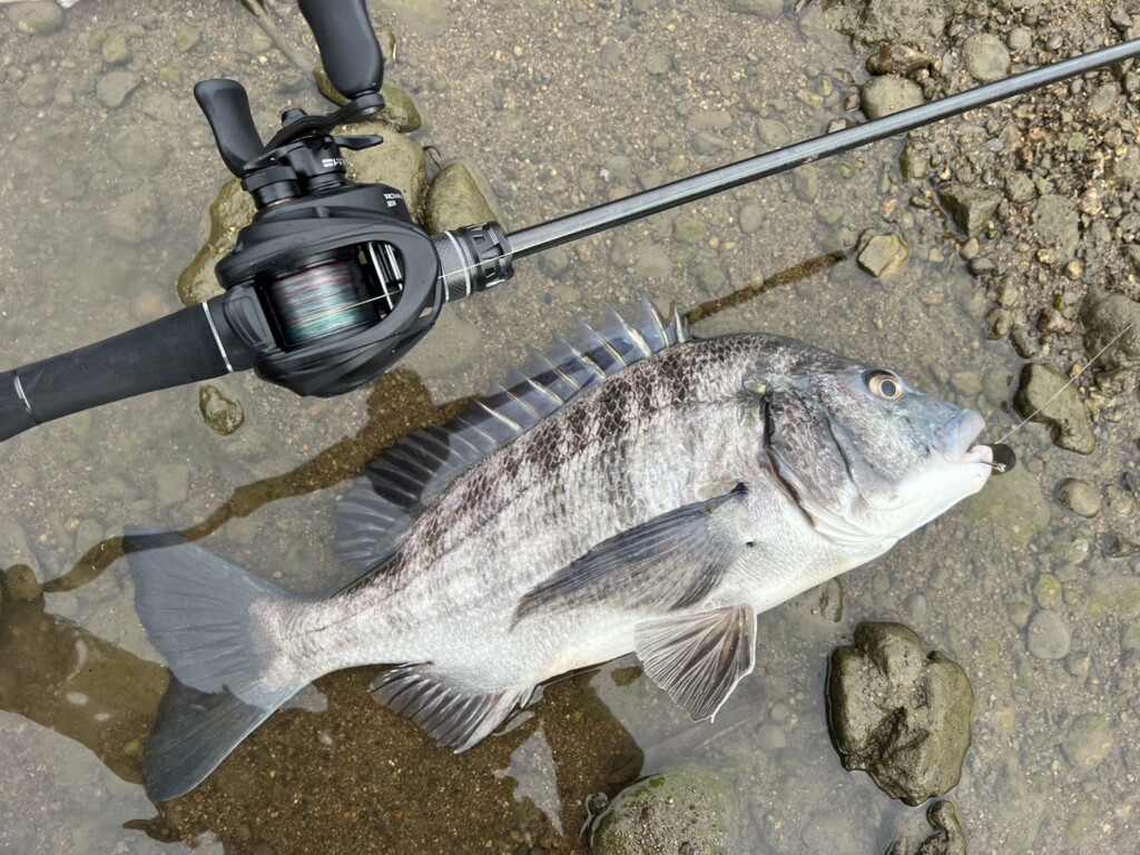 熊野川でトップとクランクでチヌ。