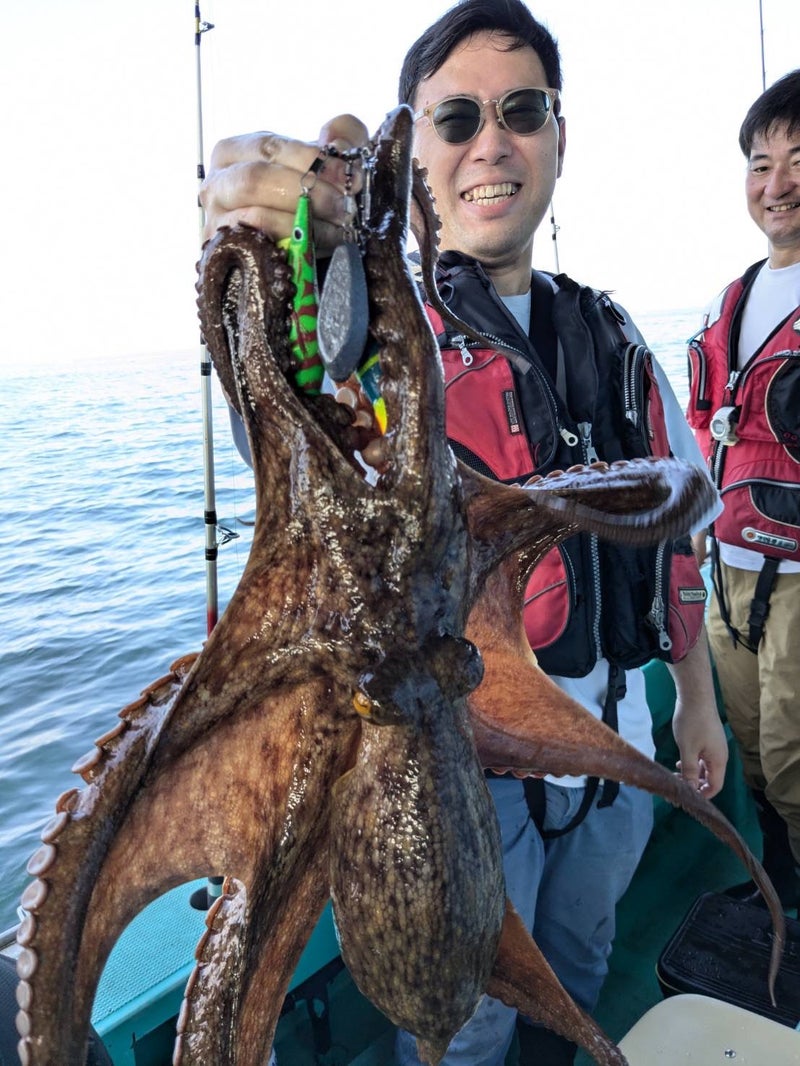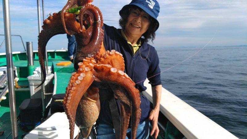 明石沖では、夏を迎えてもマダコの乗りはまだまだ好調をキープ中。サイズもよいモノがよくまじっており、1kgクラスはもちろん、4kgクラス、6kgに迫る5.7kgという超特大も登場しています。数もよい人20パイオーバーで、2ケタ釣果も続出中。開幕から好調の今期は、まだまだ型、数ともに期待十分です。