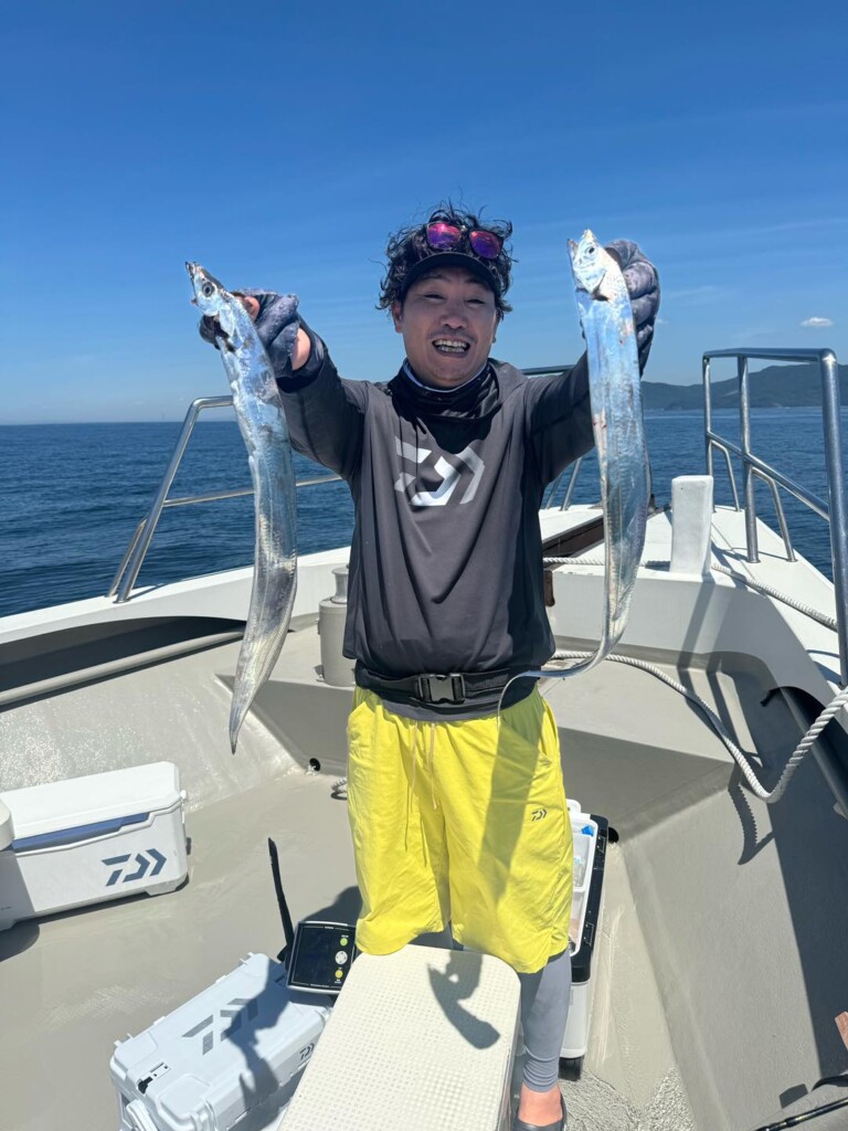 タチウオ狙いはまだ出船も潮に合わせてとコンスタントではありませんが、潮次第で平均幅指3本クラスをよい人2ケタ狙えます。