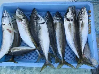 ジギングの青物は、メジロが船中14~30尾と2ケタ釣果が続いており、日によりブリクラスやサワラもまじっています。船によってはリレー便もあり、マダコなどとの2本立てもできます。