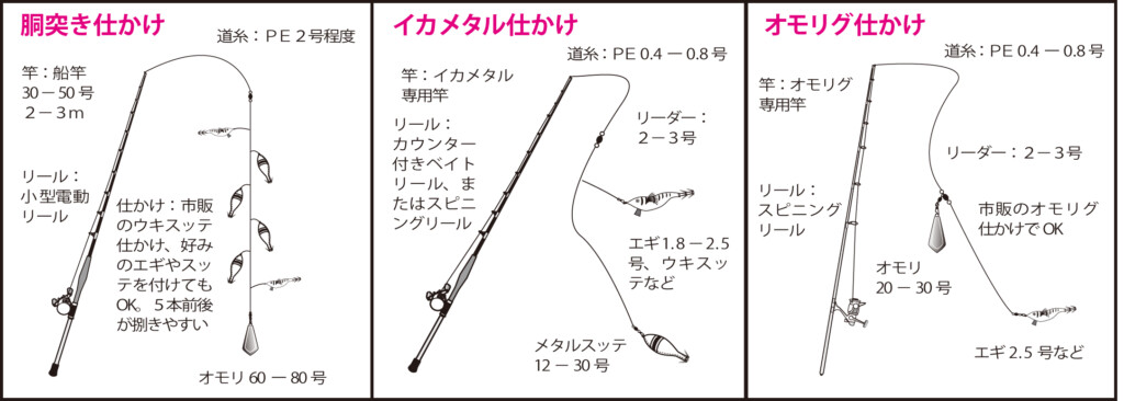 イカメタルやオモリグは、それぞれイカメタル用、オモリグ用の専用タックルがベストです。