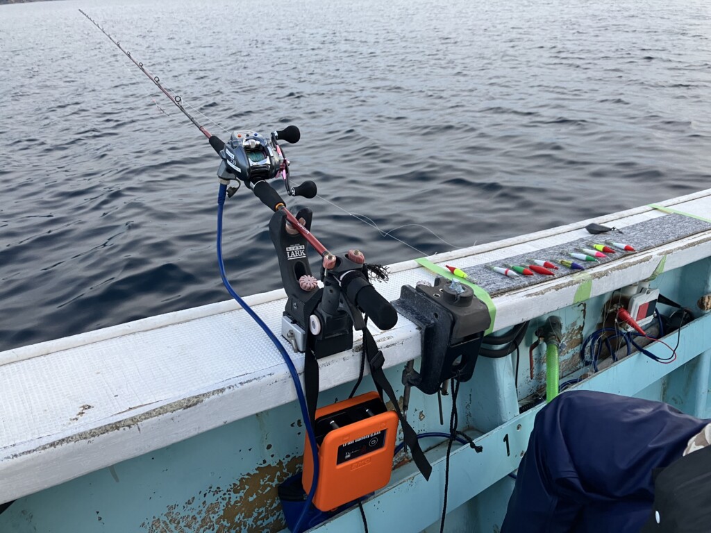 イカメタルで狙う場合は、タナが分かりやすい、カウンター付きの小型ベイトリールを使うと便利。船内でヒットダナの共有もしやすく、タナ合わせもしやすくなります。