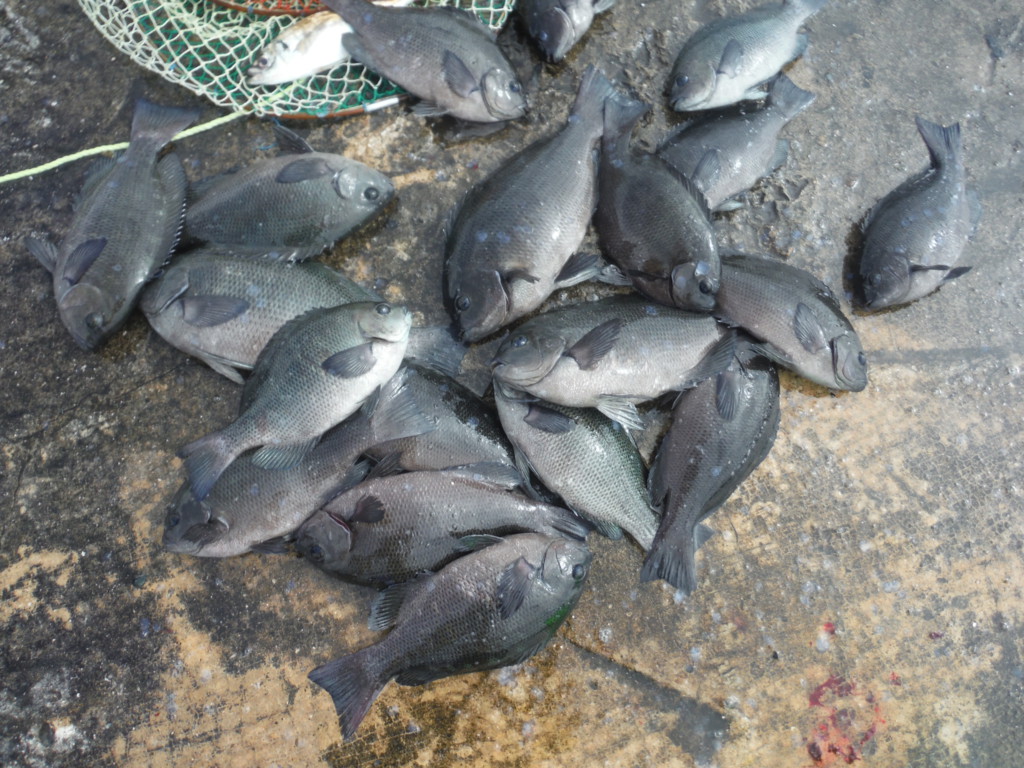 スカリにグレが20尾も入ると、上げ下ろしに手が痛くなったので、釣ってもリリースした。