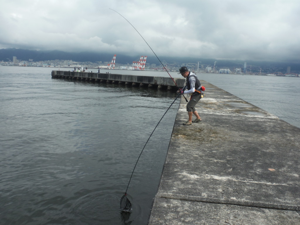 チヌを取り込む釣り人