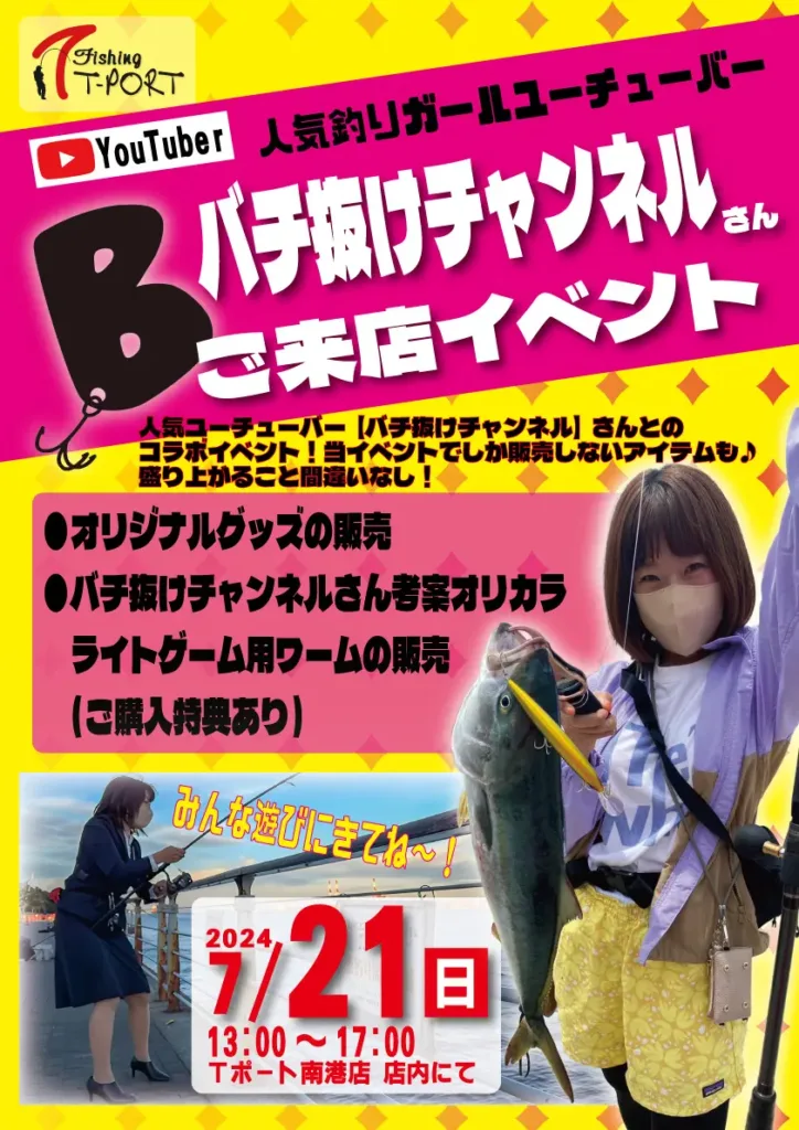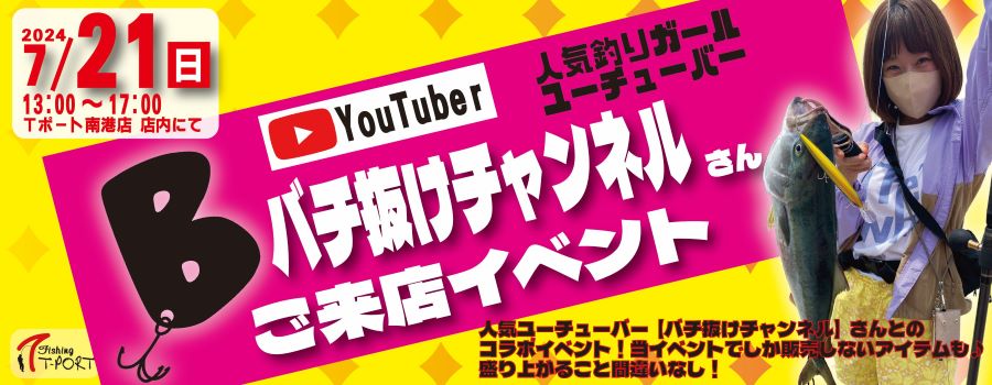 今週末の7月21日、13~17時にTポート南港店にて、バチ抜けチャンネルさんのイベントが開催されます!