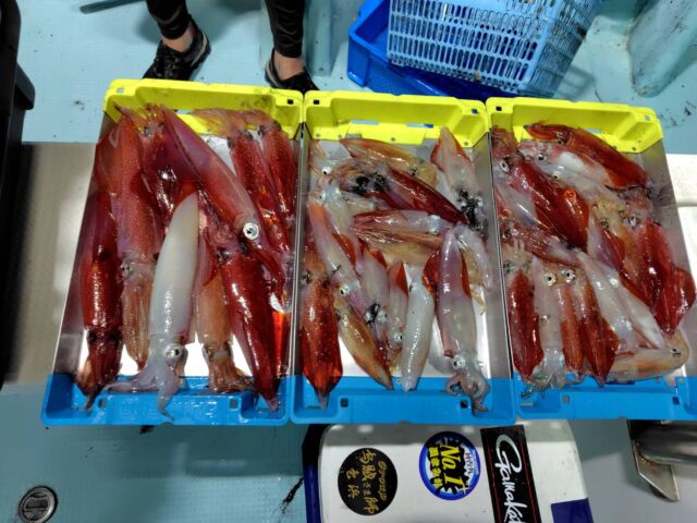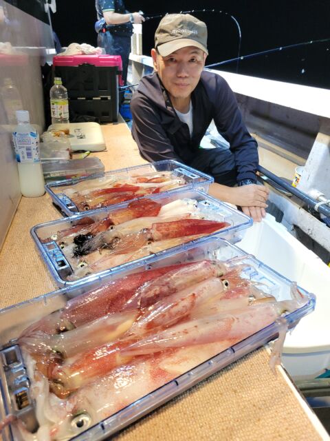 今週は、各沖ともに夜釣りのマイカがシーズン本番に突入した感です。まだ日ムラや場所ムラはあるものの、よい人50パイオーバーの日もあり、オールナイト便やロング便では3ケタ釣果が出た日もありました。