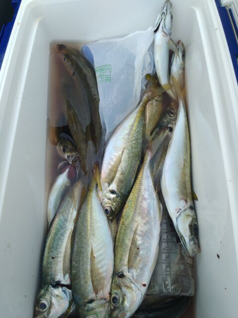 日中のイサギ狙いは、依然コンスタント。30cm前後を主体で1人30尾前後上げており、ボリュームある土産になっているほか、マイカとのリレー便で2本立ても楽しめます。