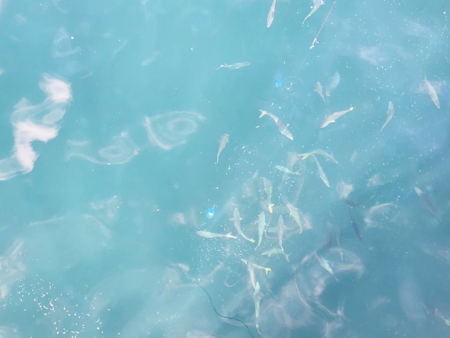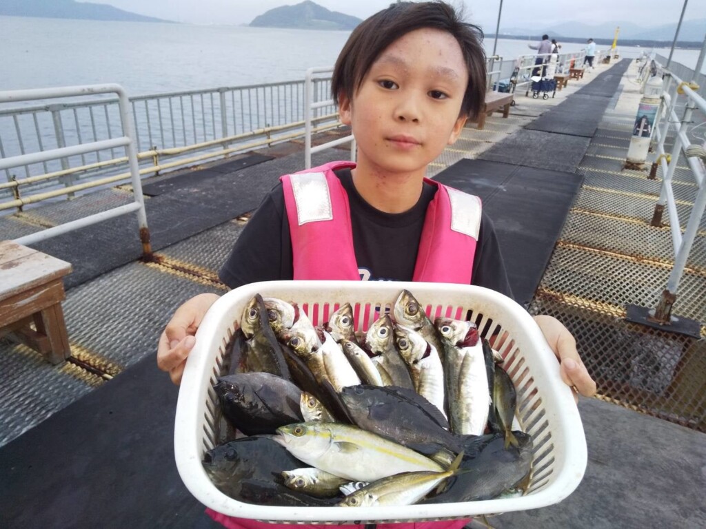 アジ20cm頭に80尾、サバ20cm頭に30尾、マダイ。
