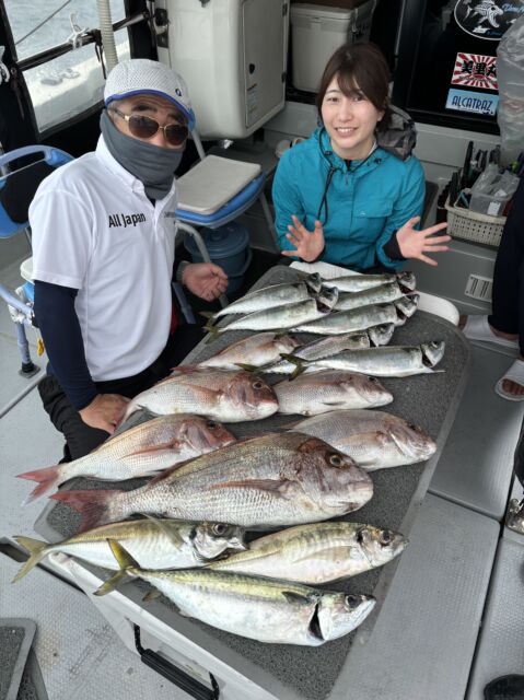 アジ狙いでは、良型、大型の食いが活発。マダイや青物、クログチなどが合わせて狙える船もあります。