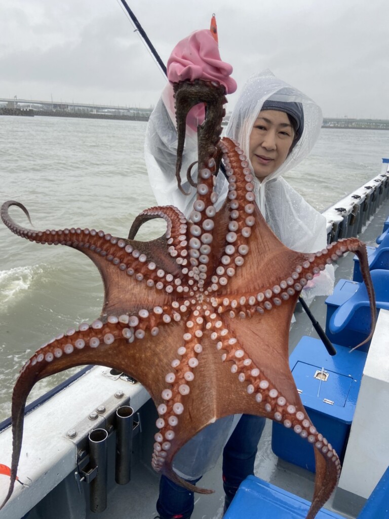 神戸発のマダコ釣りも、依然よく釣れています。1kgの良型を頭によい人連日20パイ前後、条件よかった日には46パイの大釣りもありました。2kgや3kgクラスも上がるので、重量感ある引きが楽しめますね。