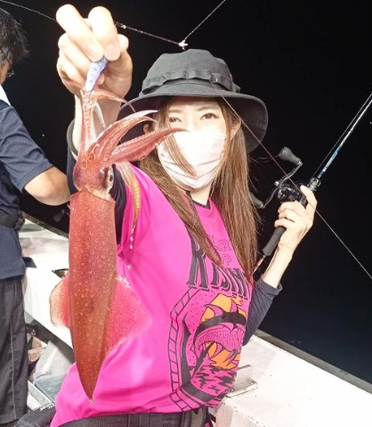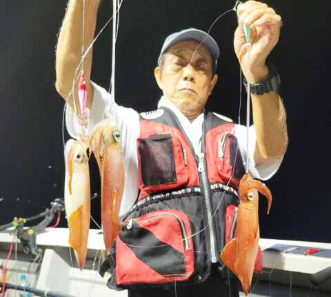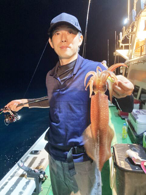 大島沖では夕方便、深夜便、オールナイト便などで狙うマイカがイチオシです。多少のムラはありますが、よい人70パイ以上を上げる日もあり、数釣りの期待も十分です。