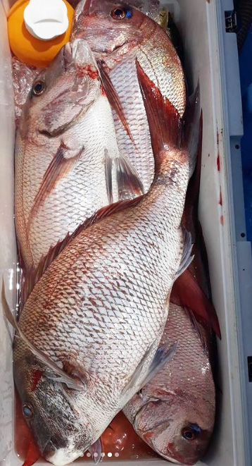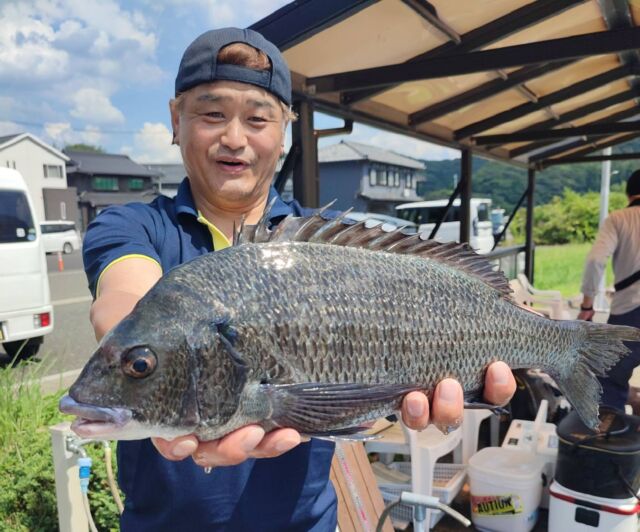 日引の筏はチヌが順調。40~50cmの型揃いで1人2、3尾は狙えます。サビキはアジ15cm級、サバ25cm級が多数釣れています。