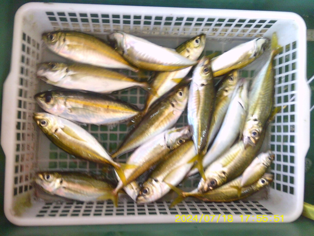 アジ16~20cm7尾、豆アジ8~10cm20尾。