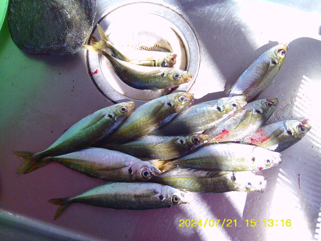 アジ13~24cm5尾、豆アジ8~10cm10尾。