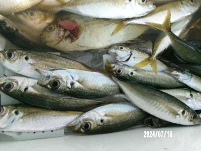 アジ16~24cm10尾、豆アジ8~10cm30尾。