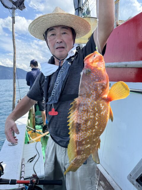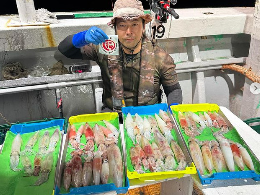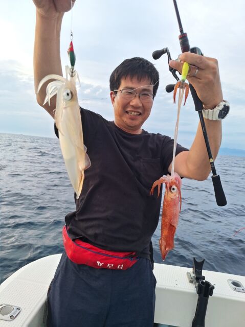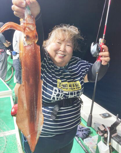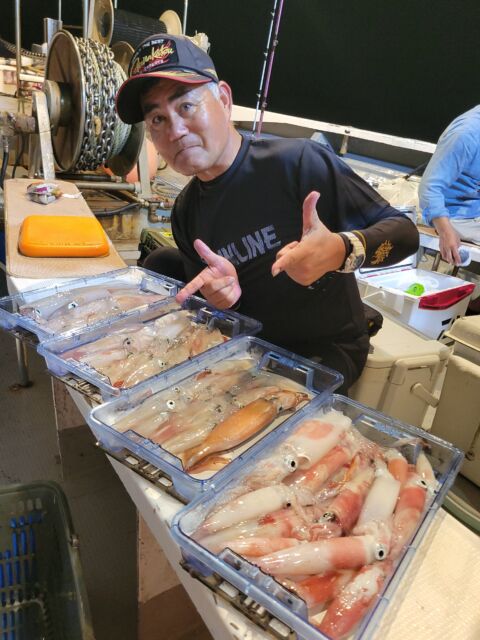 イワシエサを使った根魚狙いは、船中でアコウ40cm頭に5尾とガシラ15尾に、夜はマイカが1人5~17ハイと根魚&マイカ釣りの2本立てが楽しめていました。