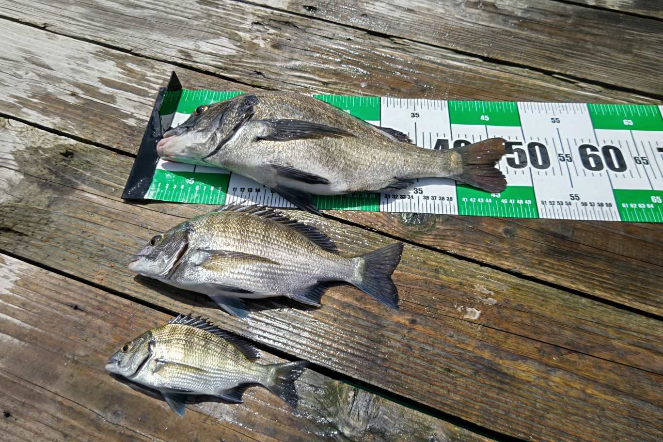 日引の筏はチヌの40~50cmを1人0~5尾。サビキはアジ15cm級、サバ25cm級が数釣れています。