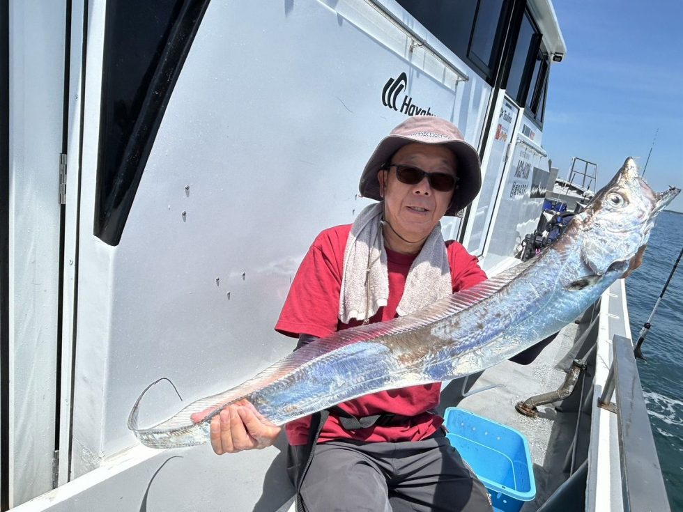 船テンヤタチウオ便など、複数体制で出船している、愛知・南知多、片名漁港の忠栄丸では、8月1日には最大123cmを頭に大型が続々と上がっていました。