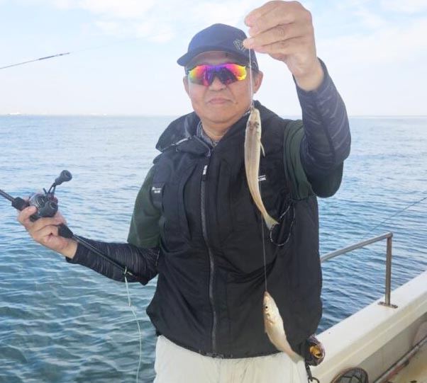 大型のアジ狙いは、40cmオーバーが期待大。40~44cmを6尾上げた人もいて、30cmオーバーの尺と合わせてよい人2ケタ釣果も。