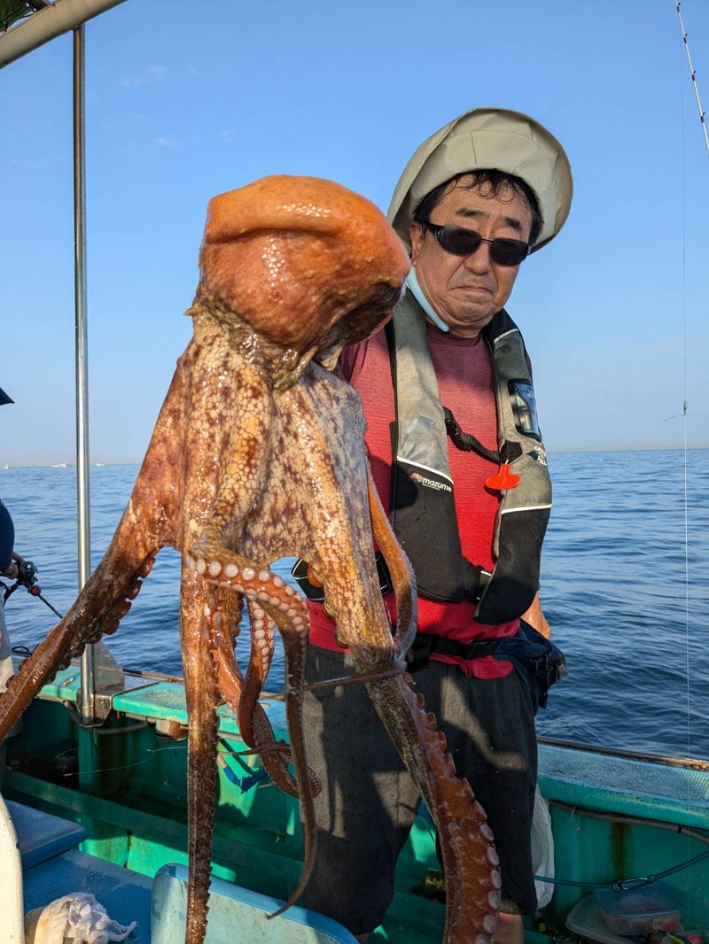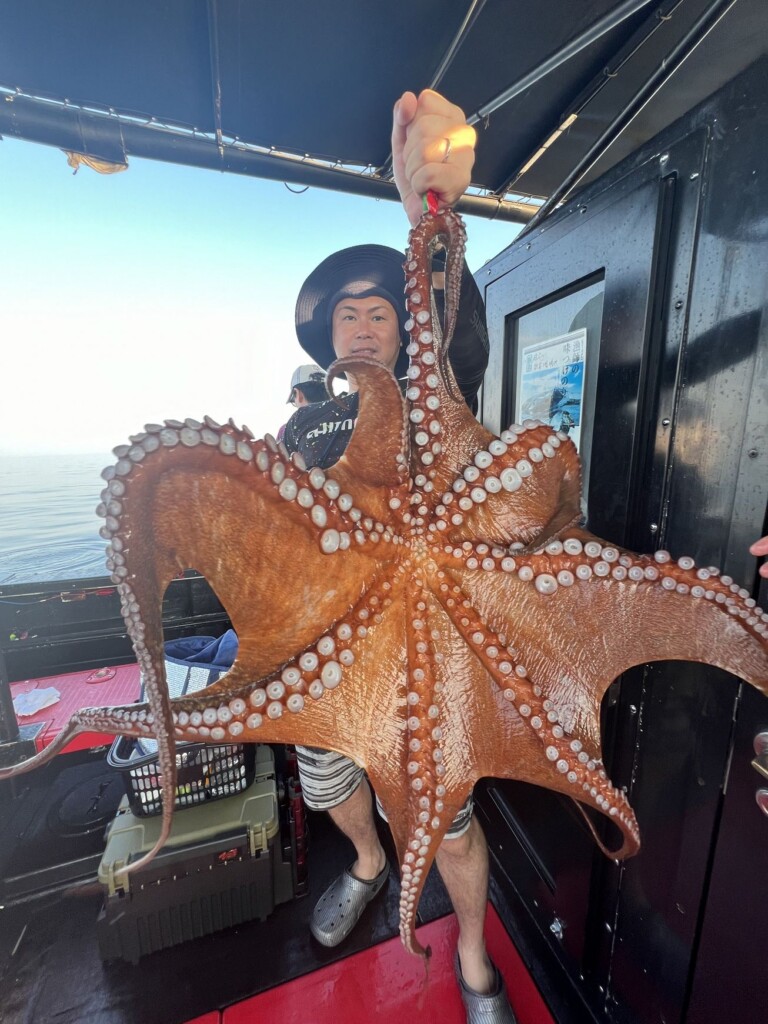神戸発のマダコも絶好調です。2kgや3kgクラスを頭に数が上がり、90パイの大釣りが出たり、50パイ前後の数釣りも続々と出ていました。