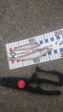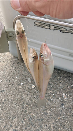 千種川でチヌ45cm頭に3尾、ハゼ20cm頭に10尾。