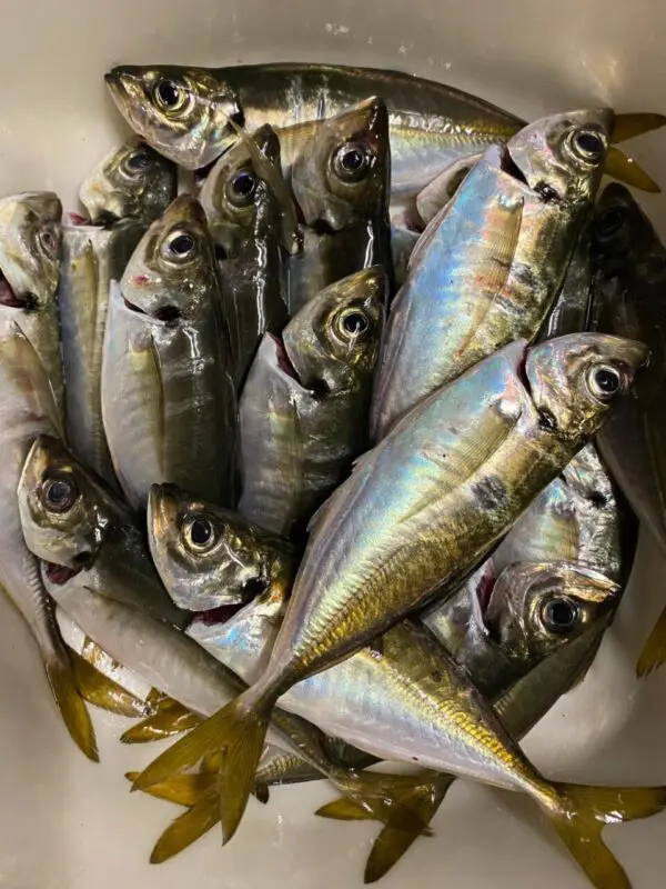 南港魚つり園でアジ17~23cm24尾をサビキ釣りで。