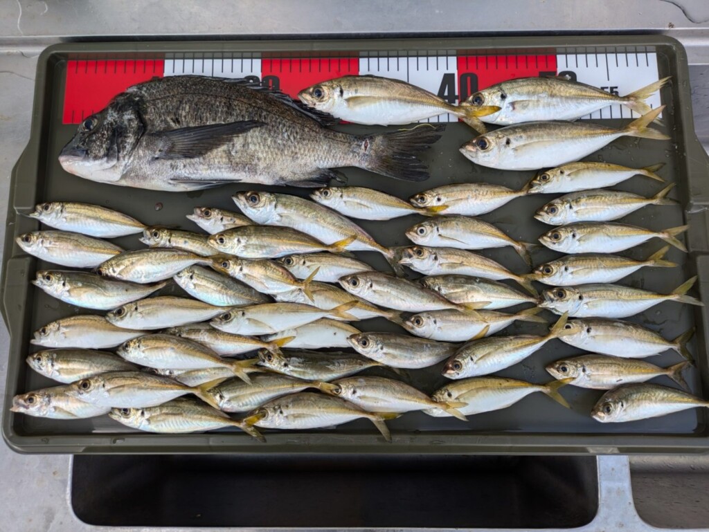 アジ25cm頭に10尾、小アジ多数など。