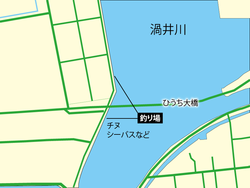 ひうち2号地は当店から約5分程度で到着できます。ポイント付近の工場がお休みの場合は、船周りを避けて車を直付けすることができます。
