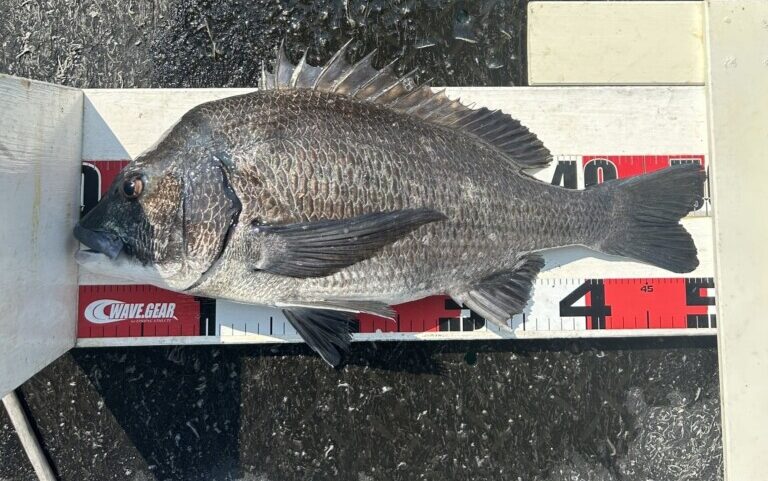 大西河口でチヌ35cm頭に2尾。