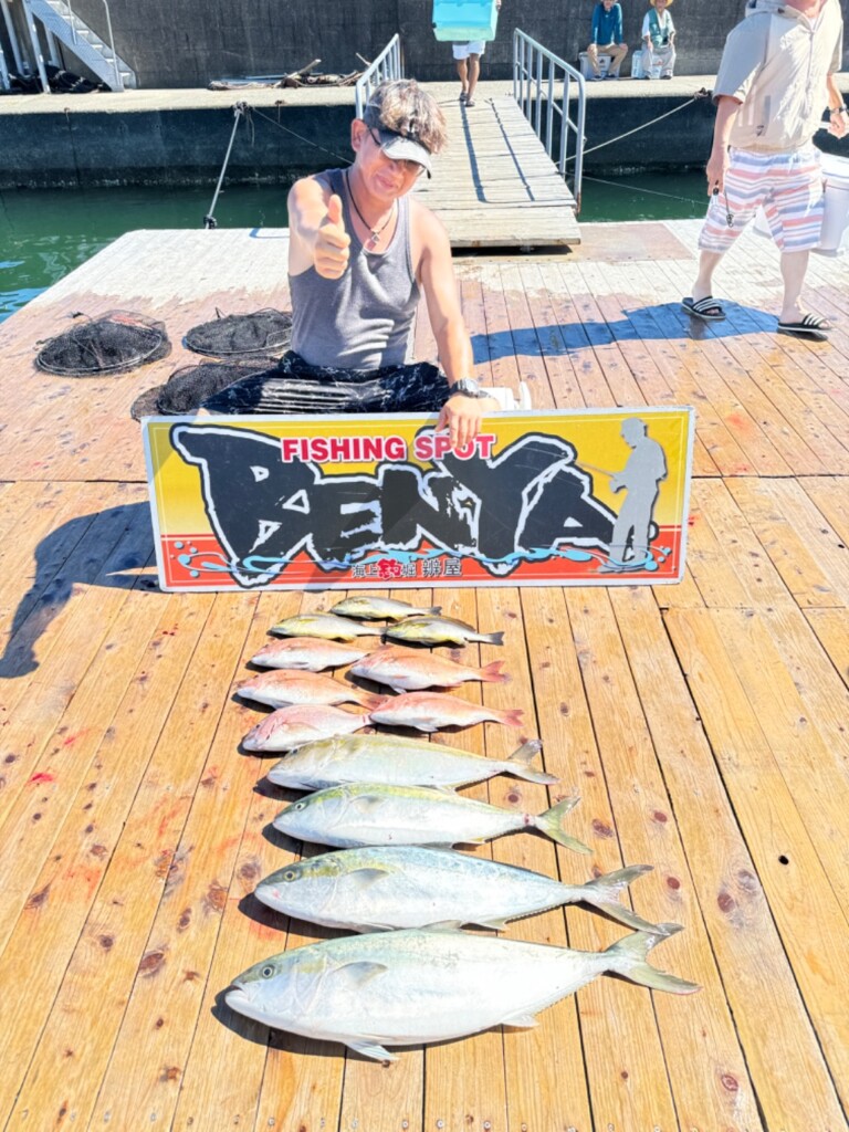 神谷氏 ヒラマサ2尾、ワラサ1尾、カンパチ1尾、マダイ5尾、イサギ3尾。