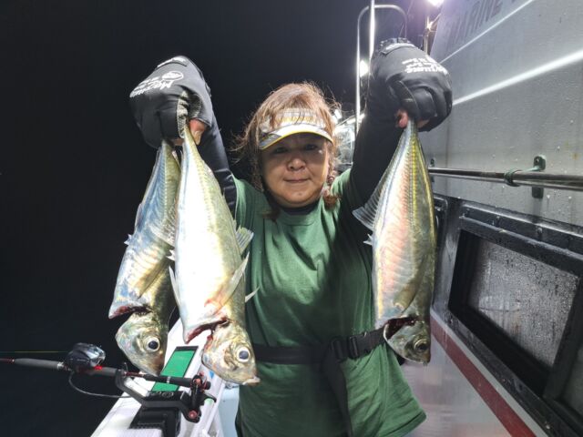 半夜の五目釣りは、アジを主体にサバやマダイ、レンコダイ、チダイなどで土産になります。