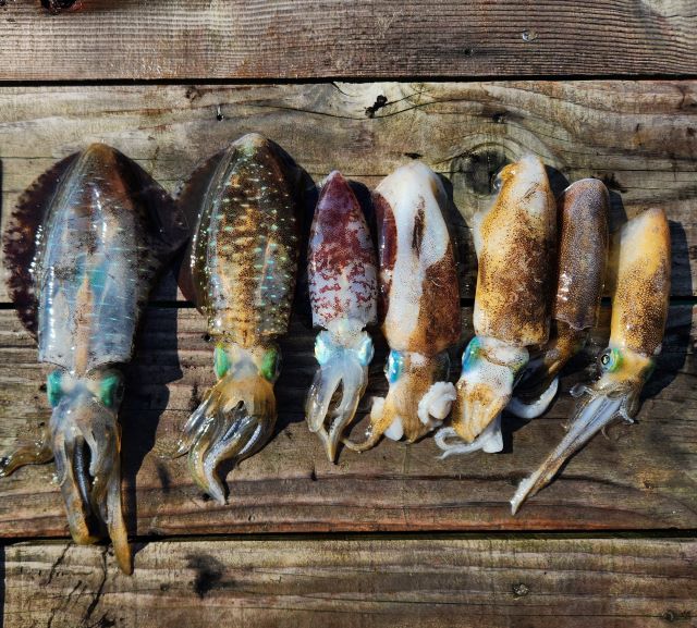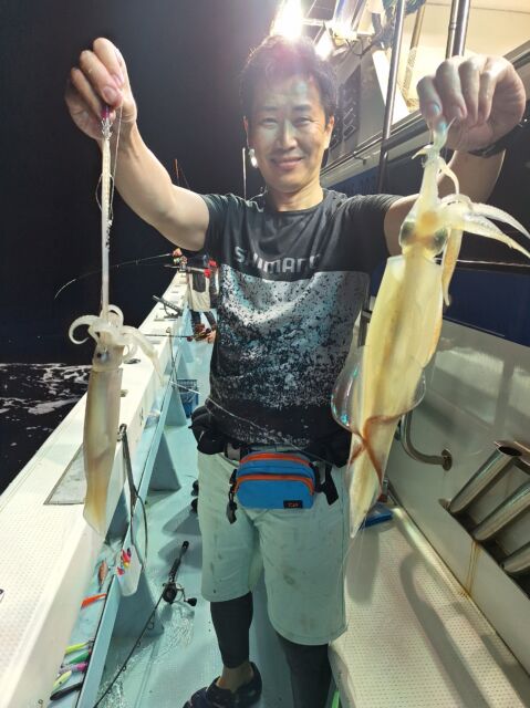 マイカ狙いは日ムラがキツいですが、よい人20~30パイ前後上げる日もありました。型は胴長20cm前後を中心に良型やスルメイカもまじります。