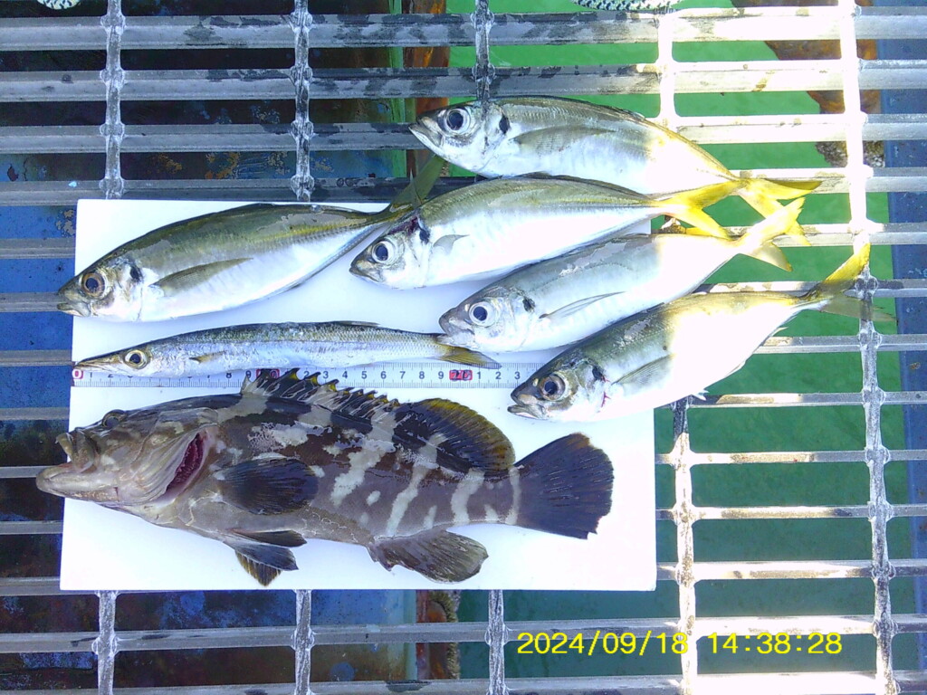 アジ18~20cm3尾、小アジ11~15cm5尾、豆アジ5~10cm20尾。