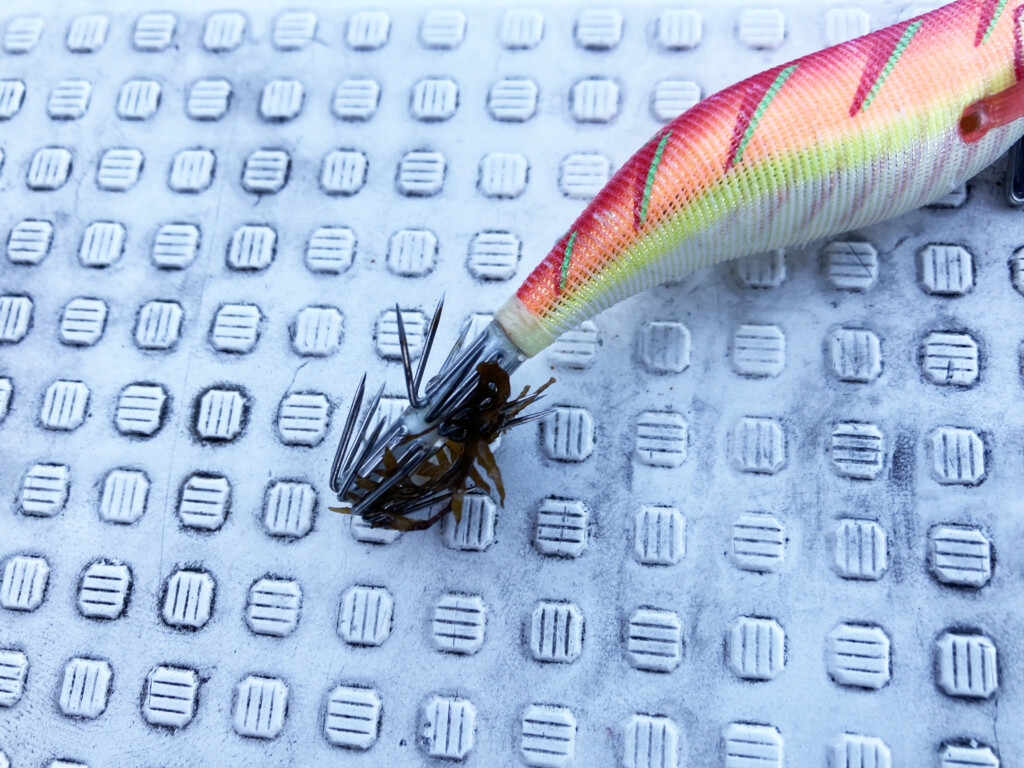 また、エギのカンナに付着物があれば、乗ってこないことが多いので、海藻などが付いていれば、必ず取るようにしましょう。