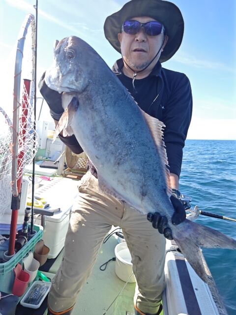 中浜沖は、フカセ釣りでヒラマサの50~70cmが1人2ケタ釣果。ほかにイサギの30~47cmが20尾上がって十分な土産になっていました。